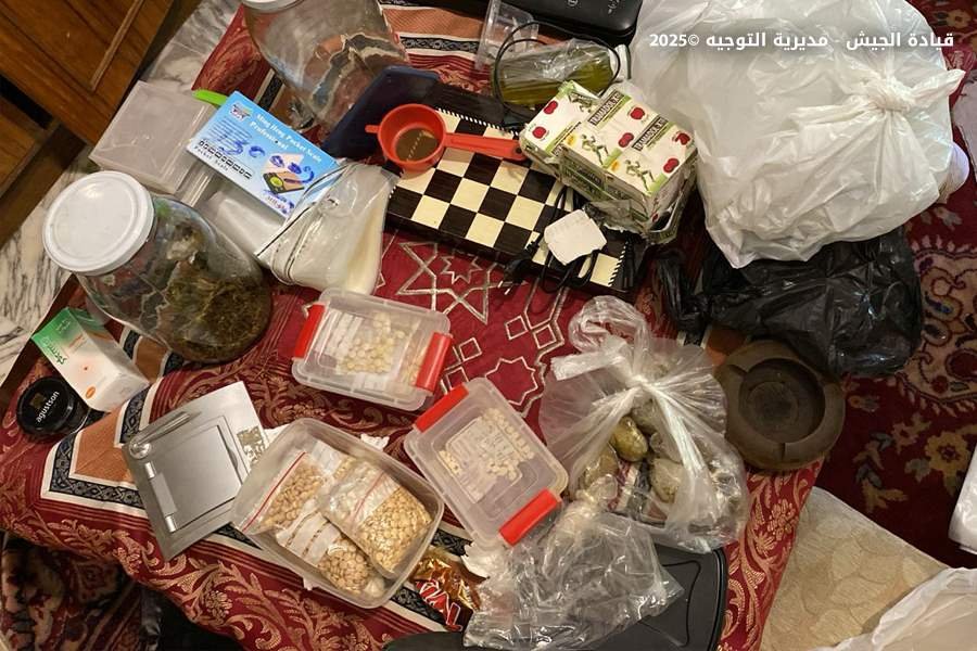 ضمن إطار مكافحة تصنيع المخدرات والاتجار بها، دهمت دورية من مديرية المخابرات تؤازرها وحدة من الجيش في منطقة اليمونة – بعلبك معملًا لتصنيع المخدرات، وضبطت كمية كبيرة منها، بالإضافة إلى مواد أولية تُستخدم لتصنيعها، وأسلحة وذخائر حربية، كما عملت على تفكيك معدات المعمل.وضمن إطار ملاحقة عصابات الاتجار بالأسلحة الحربية، دهمت دورية من مديرية المخابرات فيمنطقة خلدة منزل المواطن (ع.ع.ق.) وأوقفته وضبطت في حوزته كمية من الأسلحة. ونتيجة التحقيق معه، دهمت الدورية مستودعًا عائدًا له في منطقة عرمون – البيادر وأوقفت السوريين: (ع.ح.)، (ع.ر.ح.)، (ع.ا.)، (ع.ج.)، وذلك أثناء نقلهم كمية كبيرة من الأسلحة والذخائر الحربية والمبالغ المالية. وسُلّمت المضبوطات وبوشر التحقيق مع الموقوفين بإشراف القضاء المختص” .