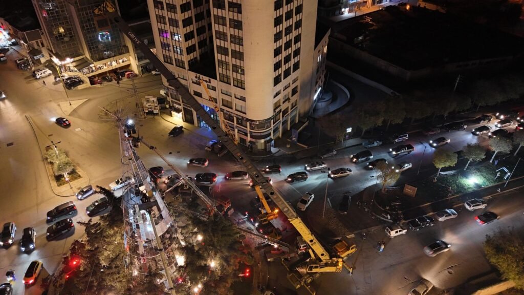 بعد الانتقادات… معدات متطورة تنهي تأخير شجرة الميلاد عند مدخل زحلة وتفكّك الأزمة المرورية