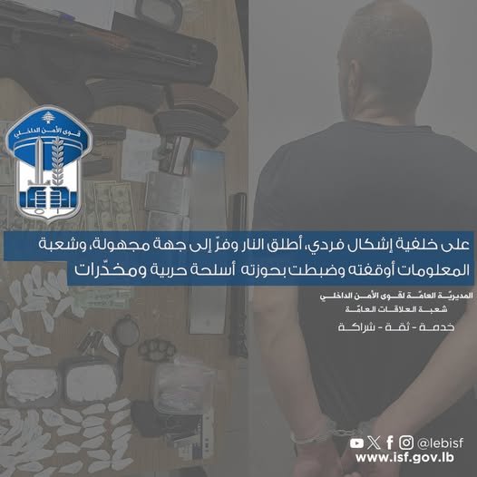 على الفور، باشرت القطعات المختصّة في قوى الأمن الدّاخلي إجراءاتها الميدانيّة والاستعلاميّة لتحديد الفاعل وتوقيفه. وبنتيجة الاستقصاءات والتّحريّات، توصّلت شعبة المعلومات إلى تحديد هويّته، وهو المدعو: